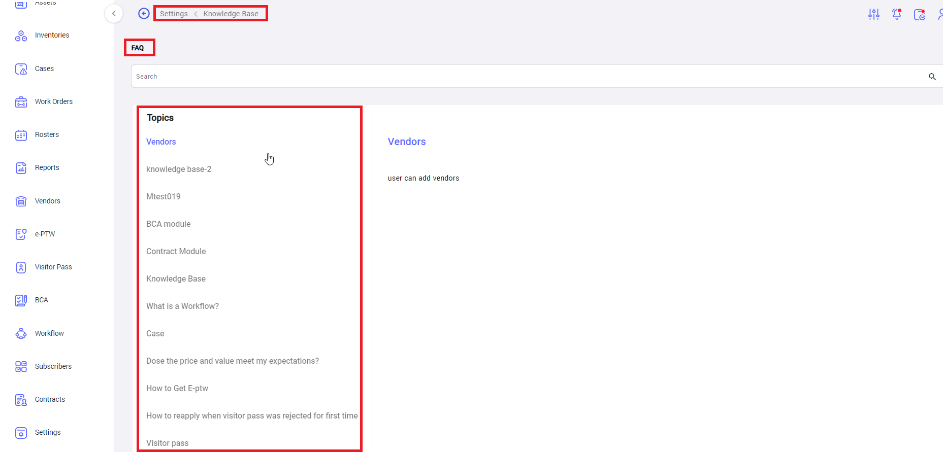1. Topics and Articles: User can manage FAQ content by using this feature. Topic will be listed on the sidebar of the knowledge base page.
