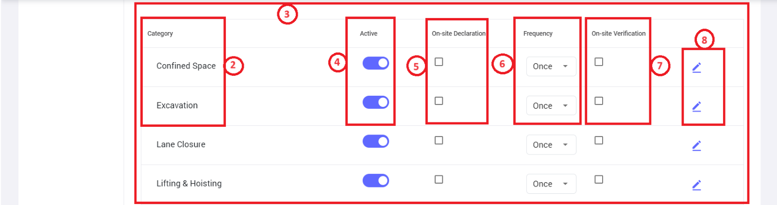 5. On Site Declaration: To describe on-site declaration for specific PTW category Required or not.