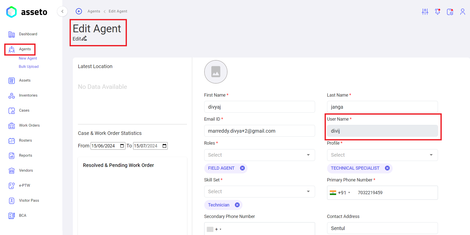 Agent Edit: In agent detail’s view page, we have an option to edit and update the agent details by clicking on edit icon (available nearby agent name top left side of agent view page).