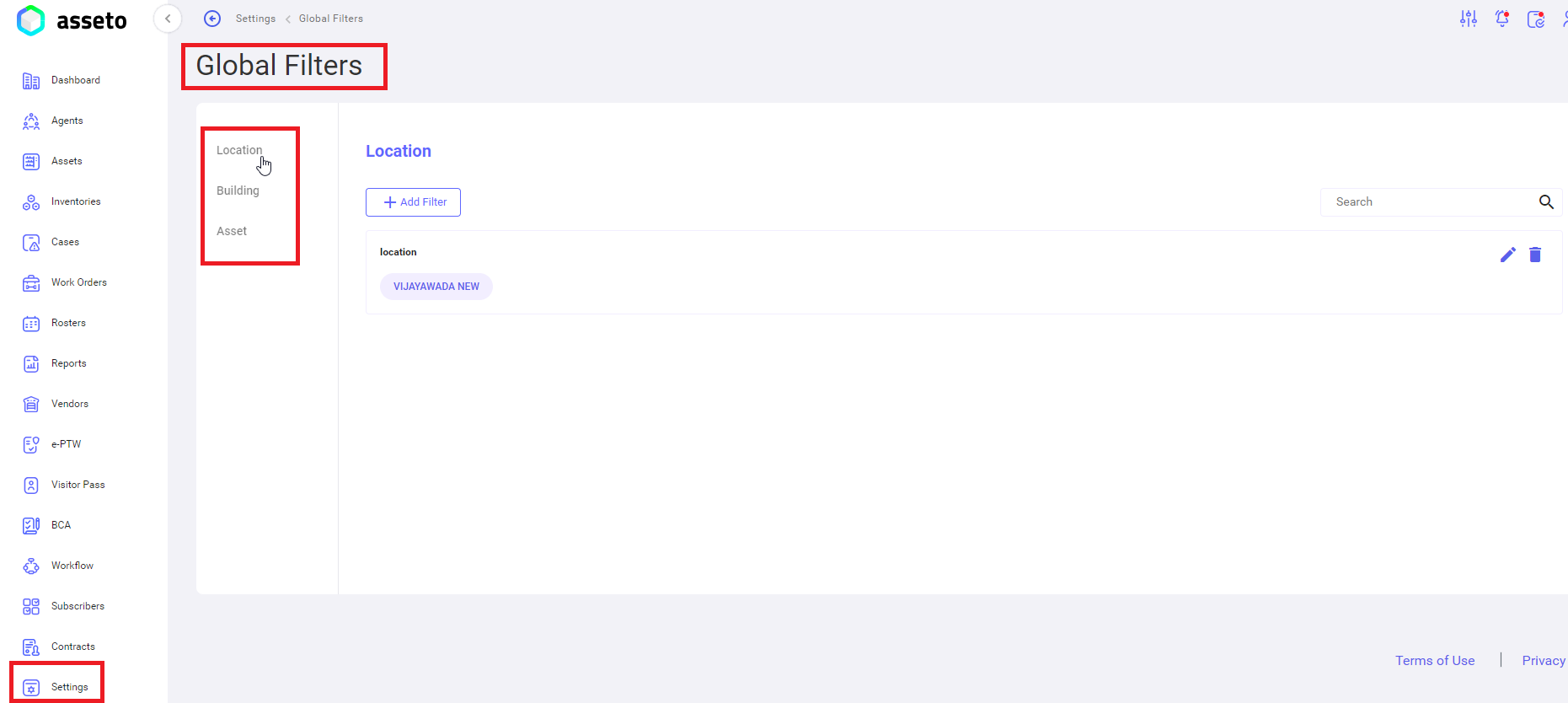 iii. Settings -> Global Filters -> Asset:
