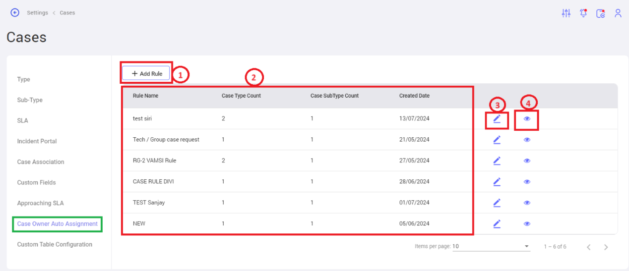 - List view: Case sub-types configured can be viewed in a dynamic table with related information like status, edit and delete feature.
