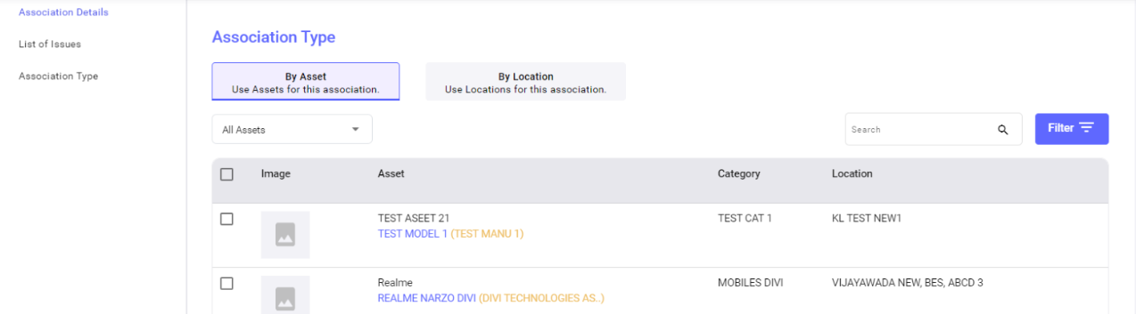 - List view: List of Associations can be viewed in a dynamic table.