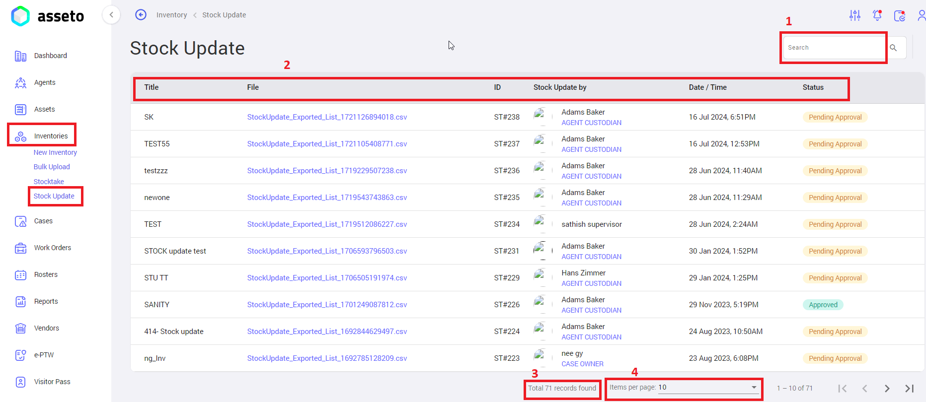3. Total records: Total number of csv files present in the system displayed in bottom of the inventories stock update table.