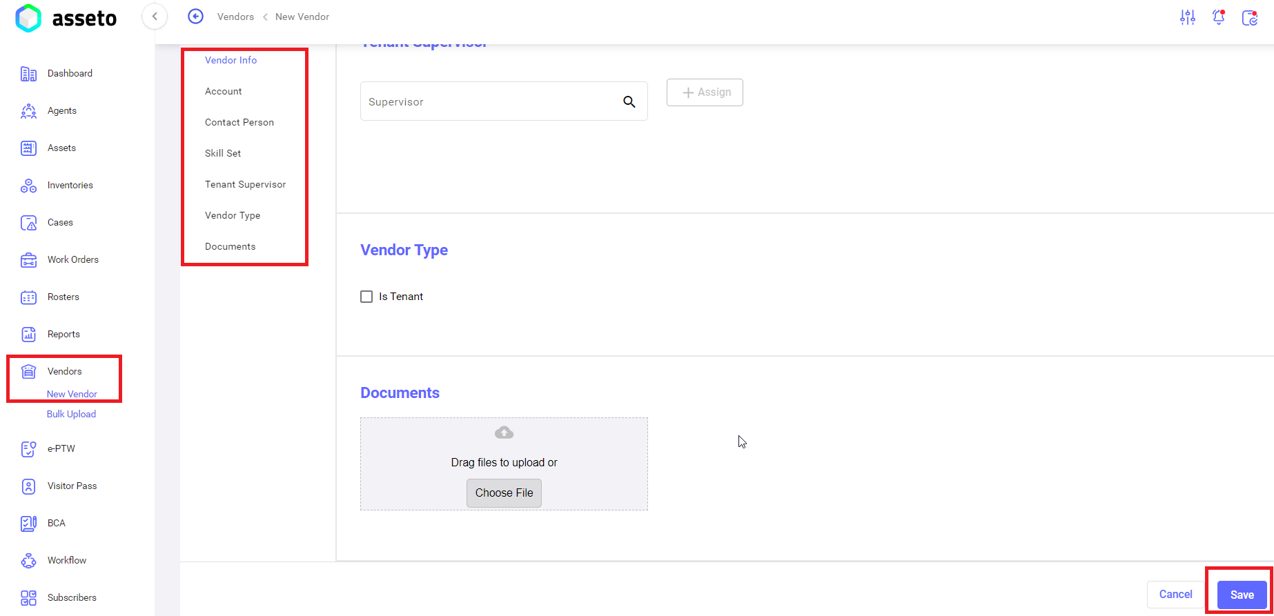 Tenant Supervisor: The person responsible for managing and overseeing this vendor. Select from the search bar and click on assign button to add.